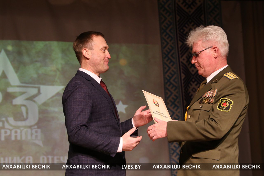 Мінулы тыдзень прайшоў у Беларусі пад знакам павышанай усеагульнай увагі ў цэлым да мужчынскай паловы насельніцтва і, у прыватнасці, да тых, хто служыў і служыць ва Узброеных Сілах. Людзі ў ваеннай форме сталі галоўнымі героямі на школьных сустрэчах, у сачыненнях і малюнках падрастаючага пакалення. У гонар Дня абаронцаў Айчыны рыхтаваліся віншавальныя паштоўкі і кранальныя ранішнікі ў дзіцячых садках, праходзілі спаборніцтвы, канцэрты, тэматычныя выставы, урачыстыя сходы і мітынгі, шчырыя віншаванні ў працоўных калектывах. Усё гэта было і ў нашым раёне.
