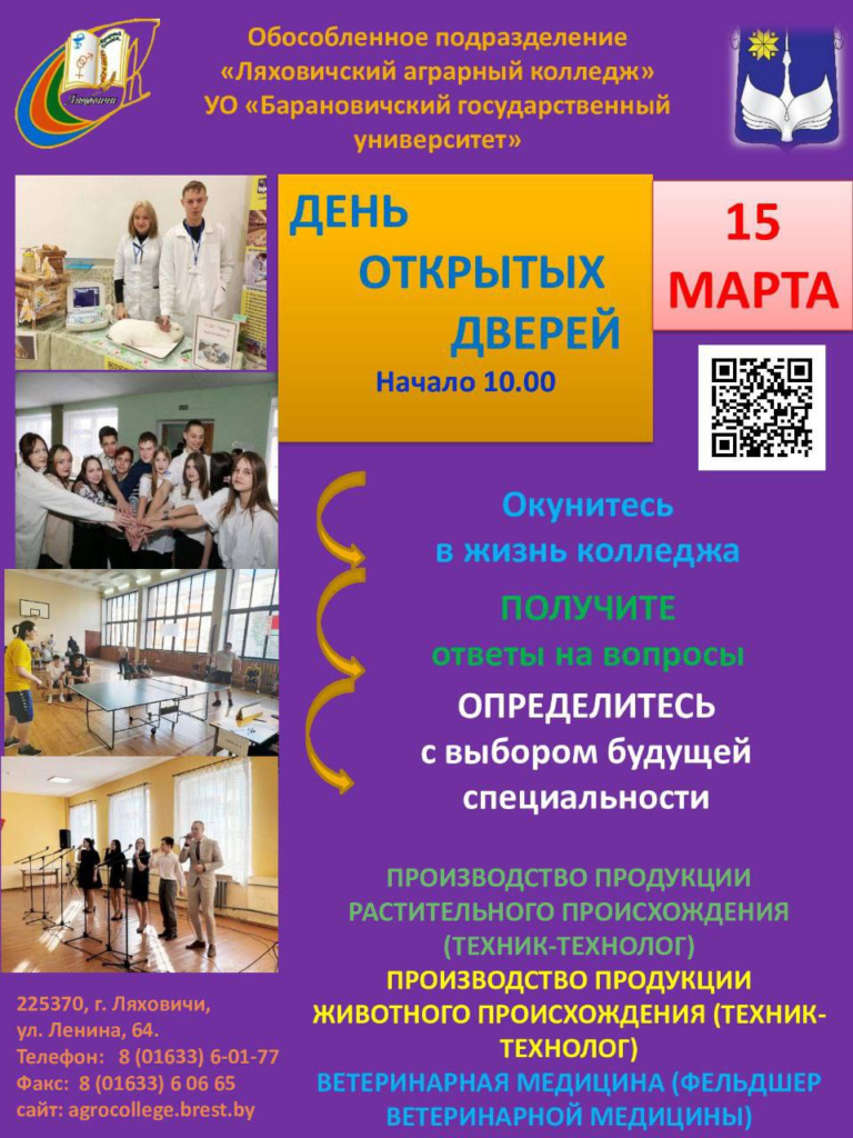Адукацыя Навіны 15 марта Ляховичский аграрный колледж приглашает на День открытых дверей 03/03/2025 216 redakcyja