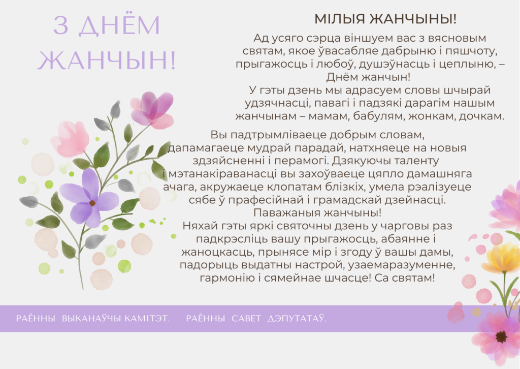 Дарагія жанчыны! Прыміце самыя шчырыя і цёплыя віншаванні з цудоўным вясновым святам