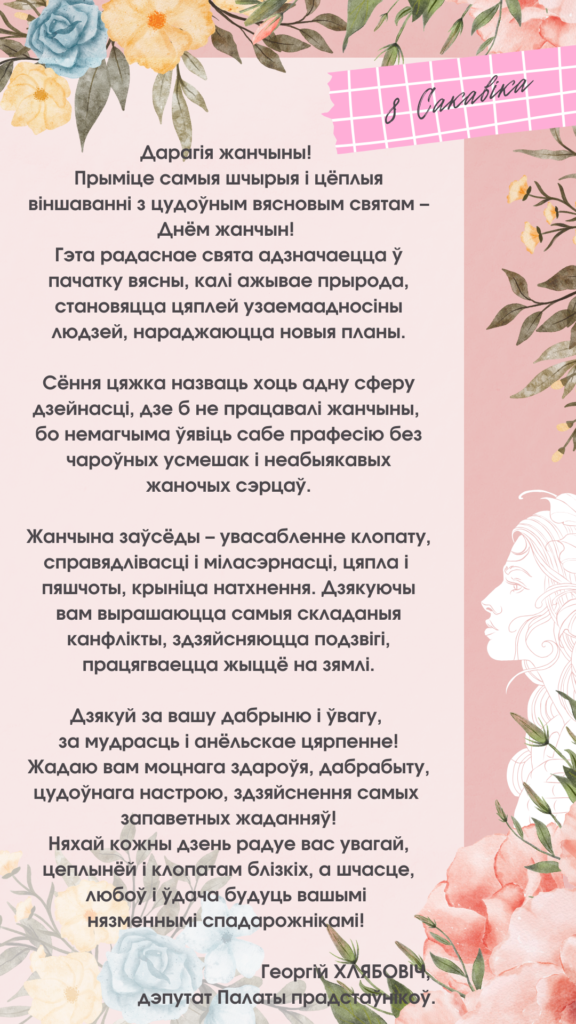 Прыміце самыя шчырыя і цёплыя віншаванні з цудоўным вясновым святам – Днём жанчын!