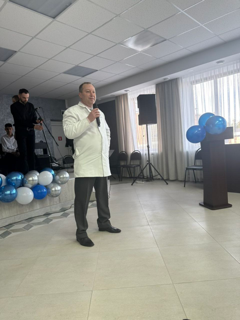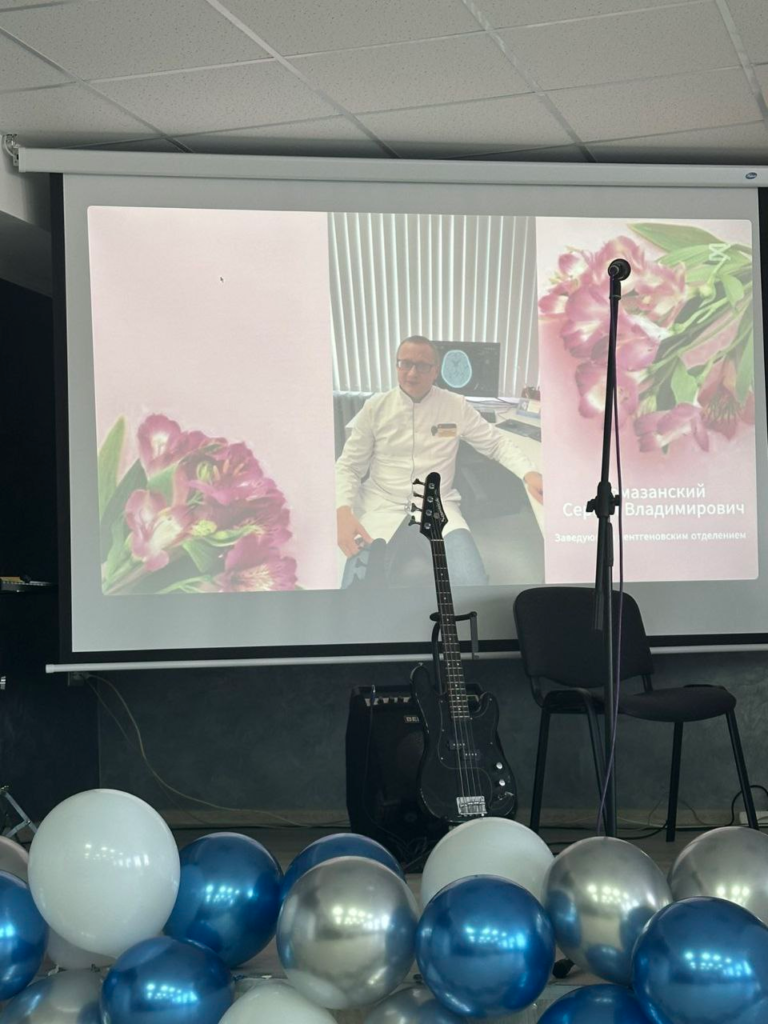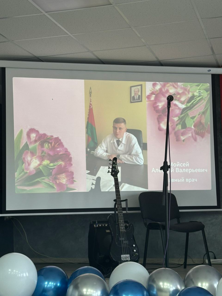 Слова поздравления женщинам звучали от заместителя главного врача по медицинской части Куриловича Руслана Леонидовича, а главный врач Мойсей Алексей Валерьевич, председатель профкома Помазанский Сергей Владимирович и мужская часть коллектива подготовили для милых дам видеопоздравления