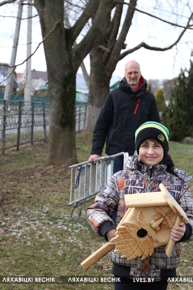 ● Штогадовая акцыя «Падтрымаем птушак!» праходзіць у СШ № 1 г. Ляхавічы. Сярод яе ўдзельнікаў – і шасцікласнік Арцём Ланкуць. Пад уважлівым кіраўніцтвам бацькі Алега ён робіць апошнія «штрыхі» ў падрыхтоўцы птушынага катэджа да засялення. Прылятайце, шпакі!