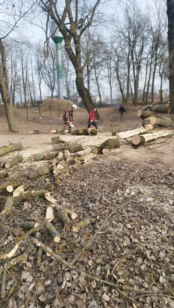 ФОТОФАКТ. В деревне Кореневщина Новосёлковского сельсовета Ляховичского района сегодня удаляли аварийно опасные деревья