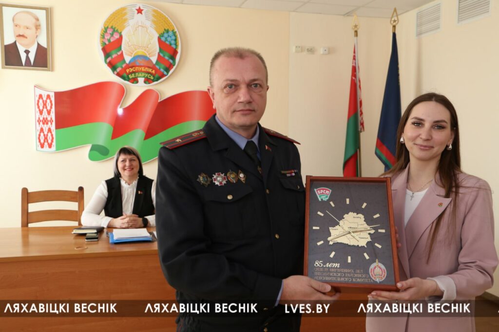 От районной организации Белорусского республиканского союза молодёжи коллективу РОВД передан сувенир к юбилейной дате образования райотдела милиции.