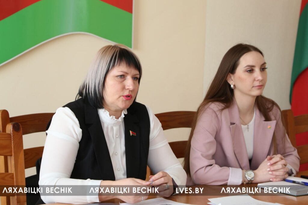 С сотрудниками милиции встретились начальник отдела идеологической работы и по делам молодёжи Ляховичского райисполкома Ольга Бурак и первый секретарь райкома БРСМ Анастасия Демидович.