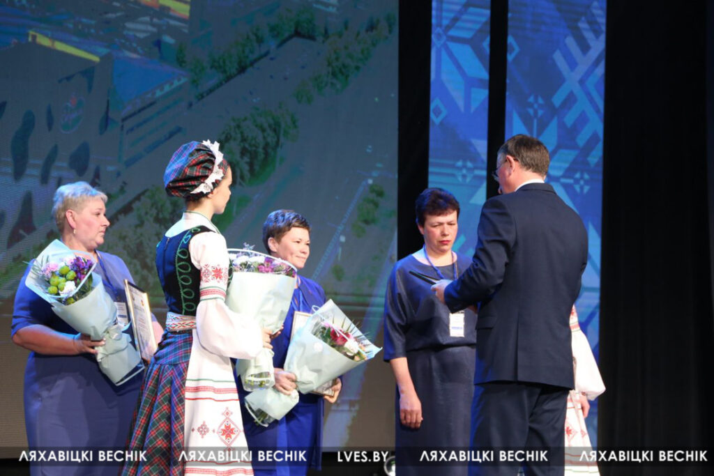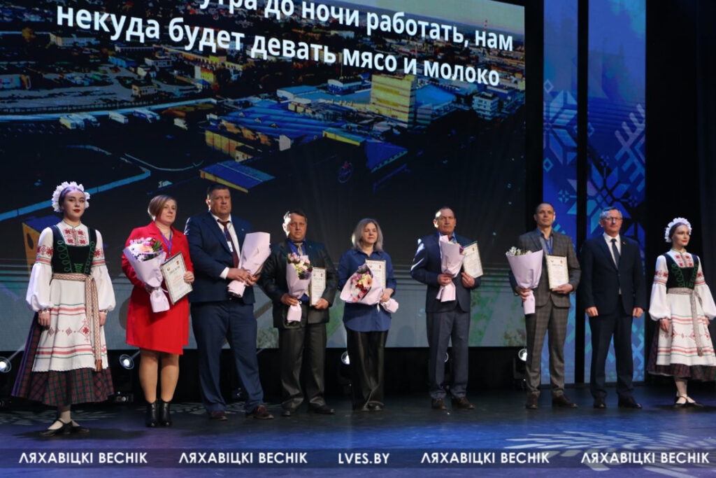 На сцене — труженики села, руководители и специалисты. Среди победителей областного конкурса — и представители Ляховичского района.