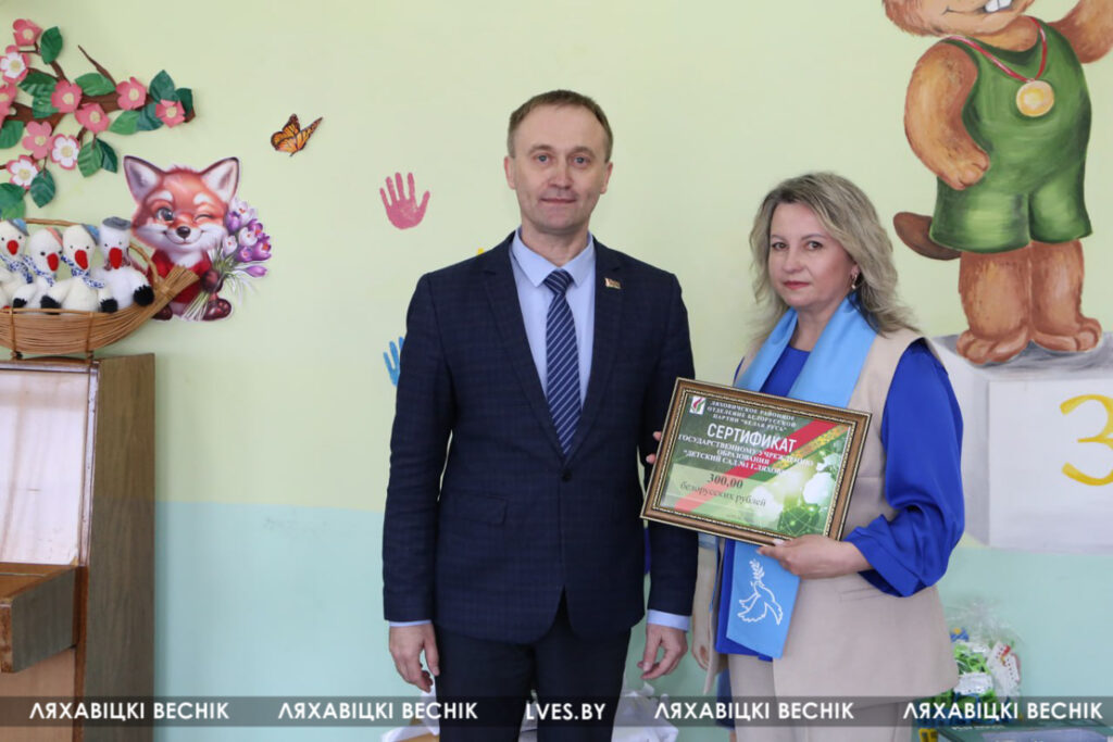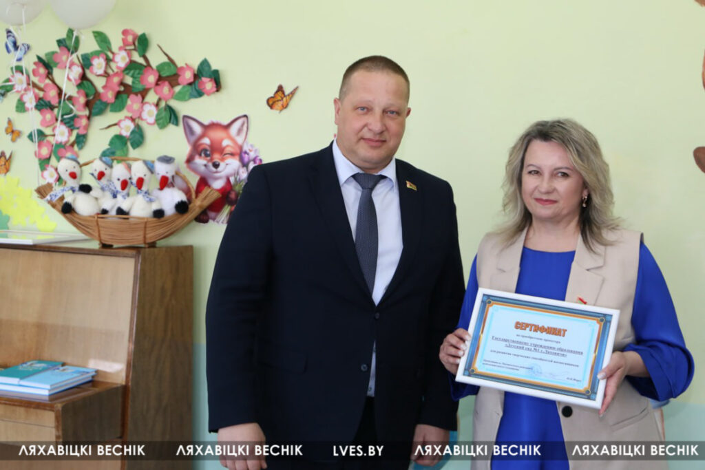 В торжественной церемонии принял участие председатель райисполкома Николай Мороз. Среди почётных гостей торжественного мероприятия — председатель правления Брестского областного отделения общественного объединения «Белорусский фонд мира» Лидия Романюк, которая вручила заведующей детским садом Елене Черняк свидетельство о присвоении учреждению статуса «Школы мира» .