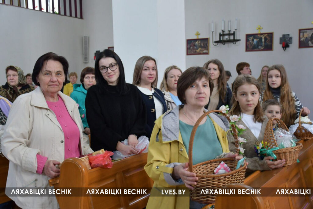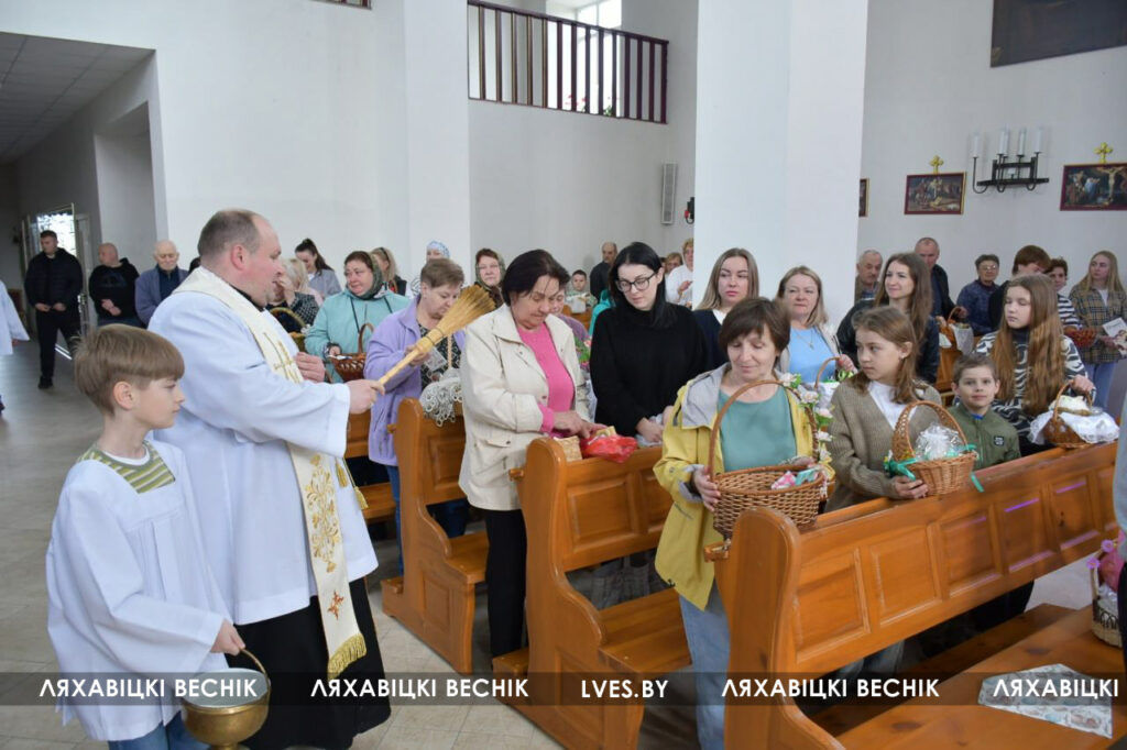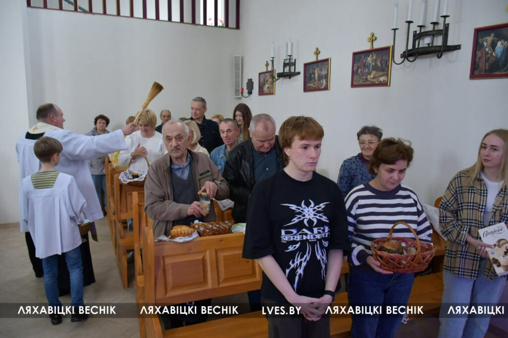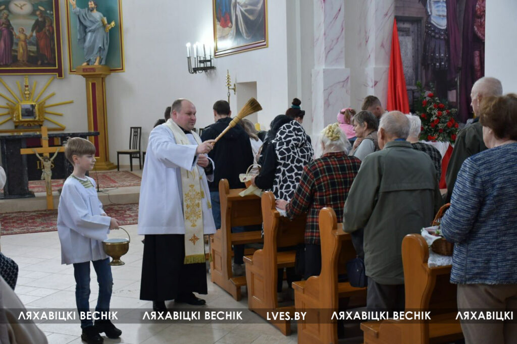 Культура Навіны Рэлігія Католики отмечают Великую субботу и готовятся встретить Пасху 19/04/2025 742 redakcyja Костёл Святого Иосифа в Ляховичах, освещение пасхальной еды.