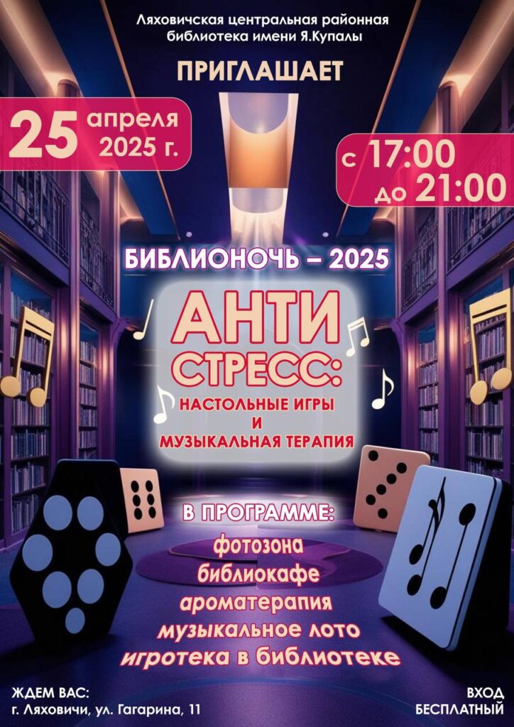 Ляховичская центральная районная библиотека приглашает всех желающих провести вечер расслабленно и весело!