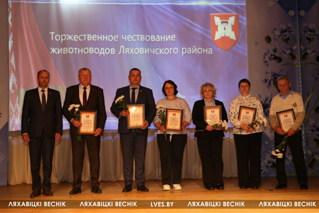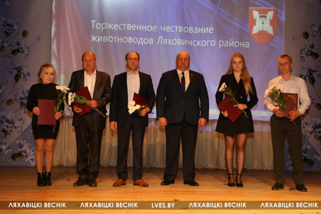 Віншаванні і падзякі за працу прагучалі ад старшыні раённай арганізацыі Беларускага прафсаюза работнікаў аграпрамысловага комплексу Вольгі Анікей. Прафсаюзны лідар аграрыяў Ляхавіччыны ўручыла заслужаным жывёлаводам Падзячныя пісьмы Брэсцкай абласной і Ляхавіцкай раённай прафсаюзных арганізацый, пуцёўкі на аздараўленне ў здраўніцы Беларусі.
