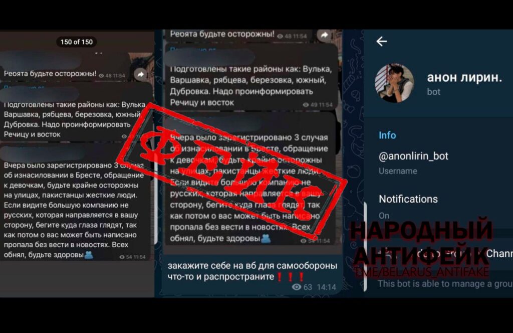 Информационные вбросы направлены на запугивание белорусских граждан, попытку манипуляции общественным мнением для дестабилизации ситуации в стране. До этого соцсети облетели публикации о дерущихся на улице белорусского города пакистанцах. Видео также оказалось дешевой провокацией. (https://t.me/belarus_antifake/237)