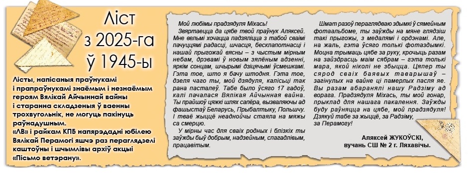 Ліст з 2025-га ў 1945-ы. «ЛВ» і райкам КПБ напярэдадні юбілею Вялікай Перамогі яшчэ раз пераглядзелі каштоўны і шчымлівы архіў акцыі «Пісьмо ветэрану»