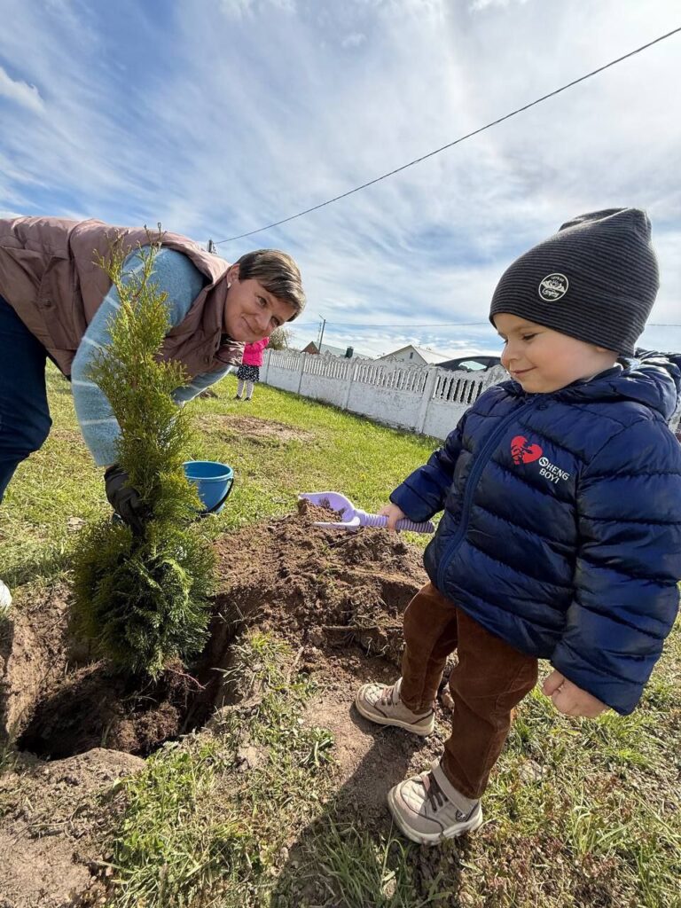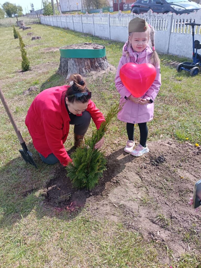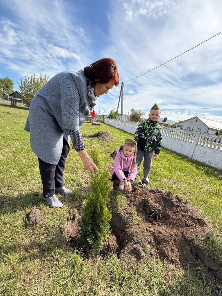 Сегодня с самого утра в Новосёлковском детском саду было шумно, весело и торжественно — высаживали алею памяти к 80-летию Великой Победы. Туи купили родители.