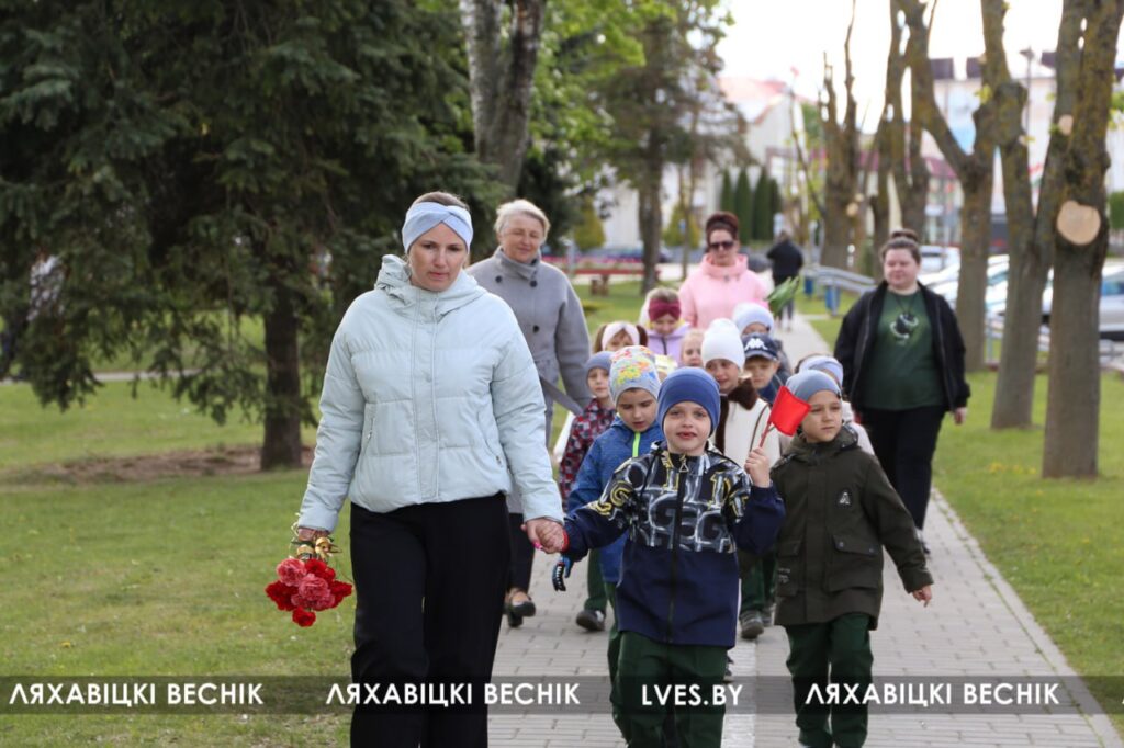 Очень трогательные фото! Воспитанники детского сада № 2 г.Ляховичи возложили цветы к памятнику воинам-освободителям на площади Победы в райцентре.