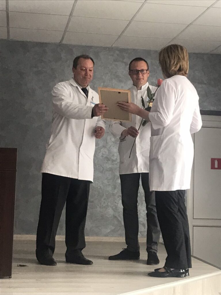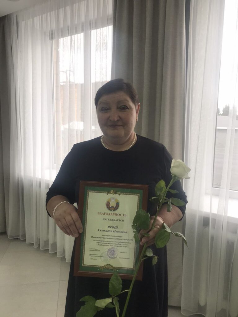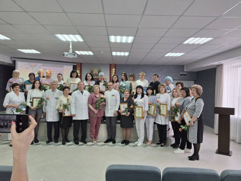 В торжественной обстановке 24 медсёстрам, фельдшерам, лаборантам, помощникам врача вручены Грамоты и Благодарственные письма Ляховичской ЦРБ. Приятный бонус — цветы