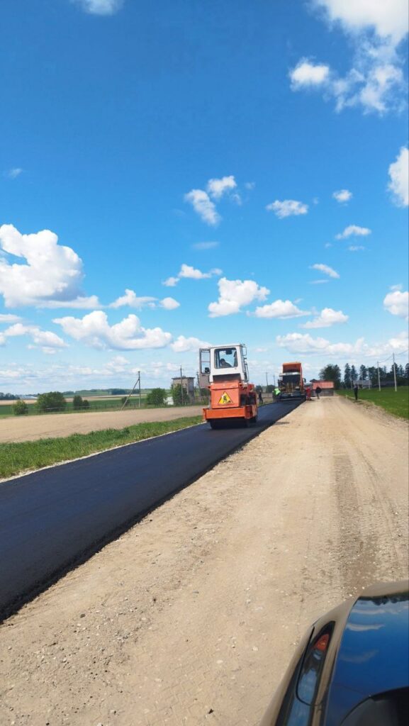 ФОТОФАКТ. ДРСУ-200 проводит асфальтирование участка автодороги Н-802 Крегли-Подлесье