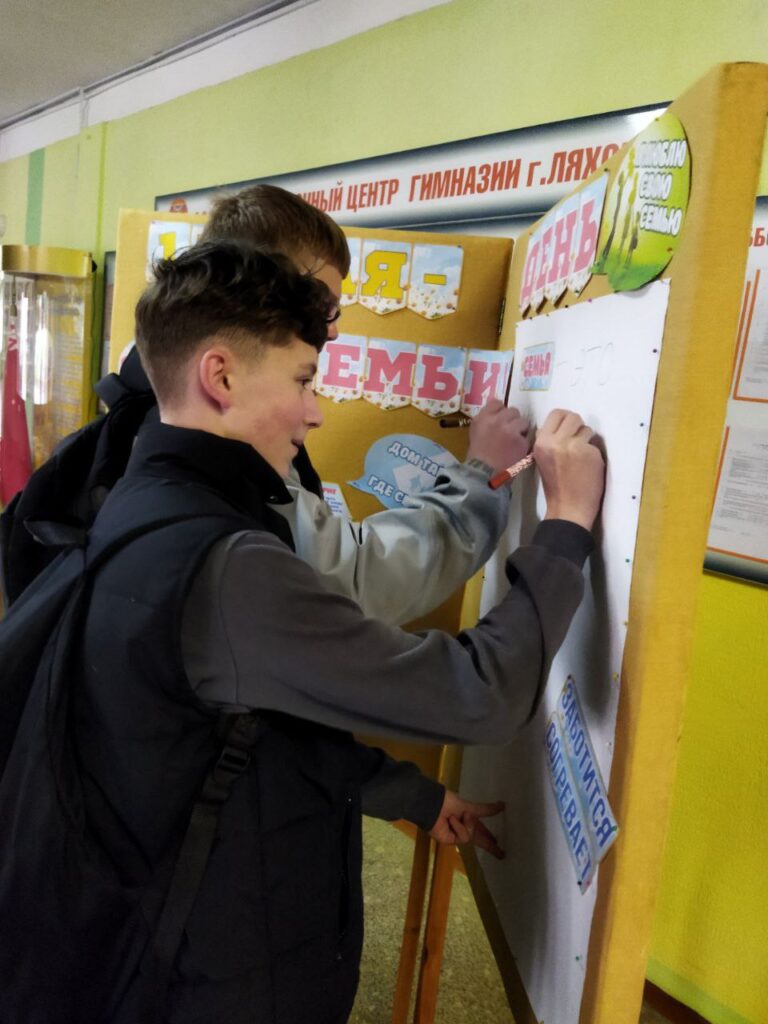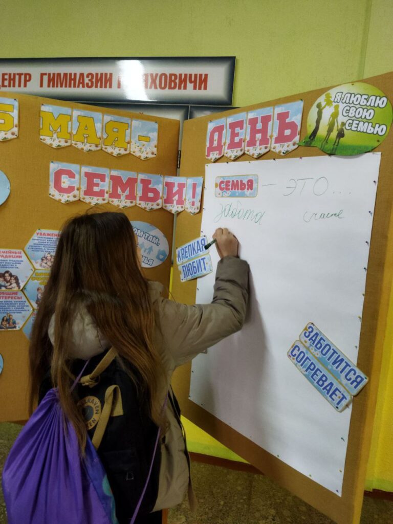 В рамках Всебелорусской акции «Беларусь – за здоровую семью и традиционные семейные ценности!» в гимназии проходит Неделя семьи. Волонтеры отряда «Поиск» провели акцию, где в ходе беседы рассказали учащимся о семейных ценностях, традициях в семье. Учащиеся, их родители и педагоги гимназии поделились мыслями о том, что в жизни каждого человека, главная ценность — семья. Обычаи, взгляды и традиции передаются из поколения в поколение.