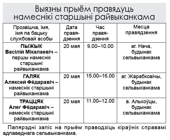 Выязны прыём правядуць намеснікі старшыні Ляхавіцкага райвыканкама