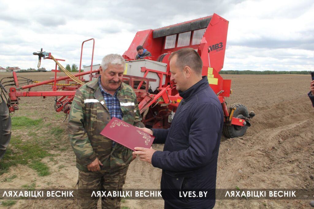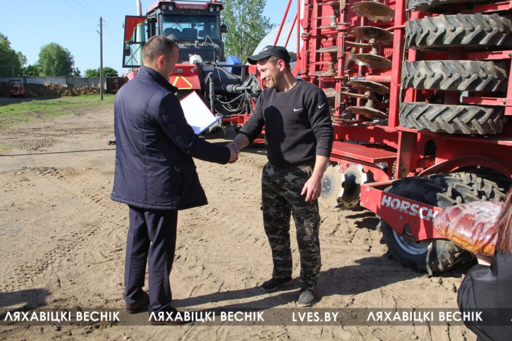 Первый заместитель председателя Ляховичского райисполкома Василий Пыжик, заместитель начальника управления по сельскому хозяйству и продовольствию райисполкома — начальник отдела организации производства Наталья Гринкевич и председатель районной организации профсоюза работников АПК Ольга Аникей побывали во всех сельхозпредприятиях района. За трудовое участие в весенних полевых работах, профессиональное мастерство лучшим вручены благодарственные письма районной организации профсоюза аграриев, а Александру Сарнацкому из ОАО «Жеребковичи» — Благодарственное письмо обкома профсоюза работников АПК.