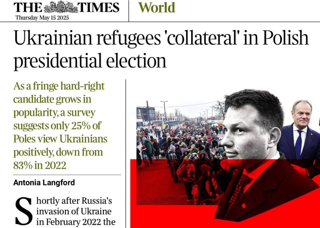 «Украинские беженцы превратились в козлов отпущения на президентских выборах в Польше», — гласит заголовок статьи в The Times.