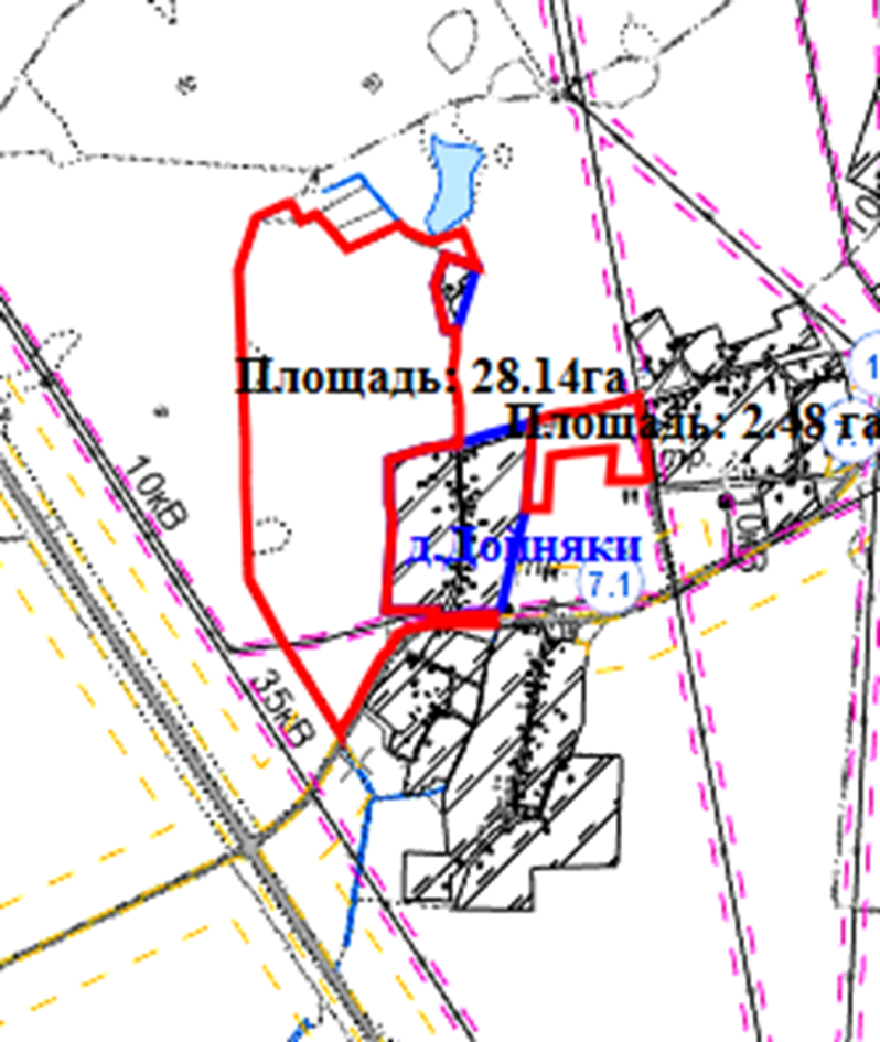 1.7. деревни Дойняки Новосёлковского сельсовета, исключив из ее черты земельные участки общей площадью 30,62 га, согласно приложению 7;