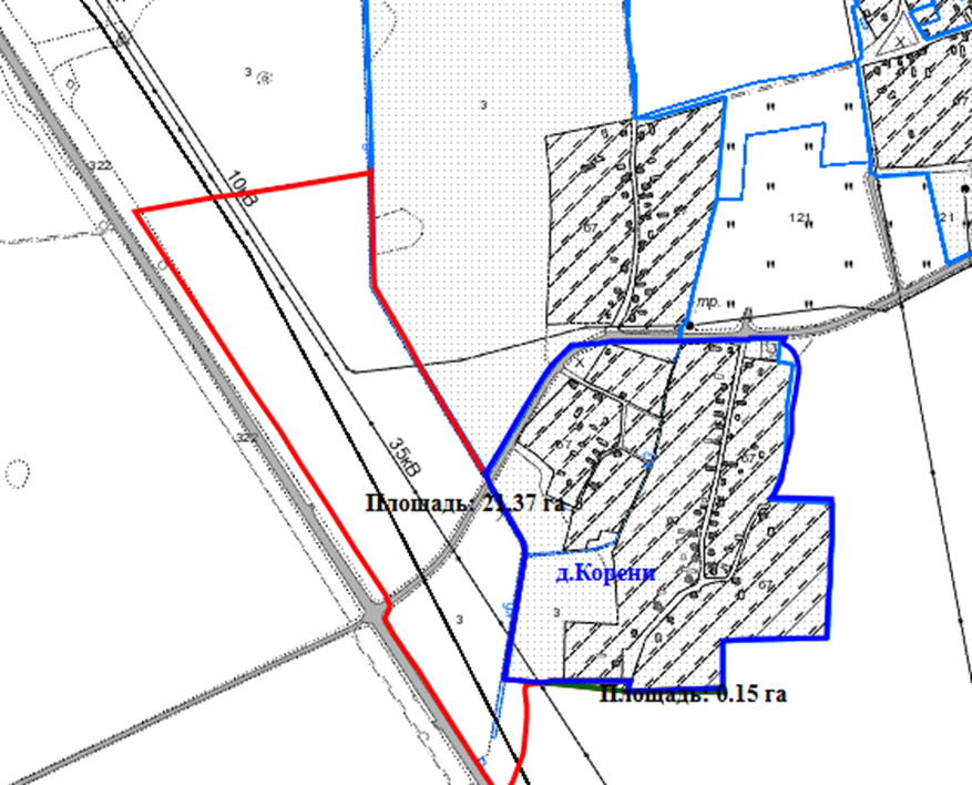 1.8. деревни Корени Новосёлковского сельсовета, исключив из ее черты земельный участок площадью 21,37 га и включив в ее черту земельный участок площадью 0,15 га, согласно приложению 8;