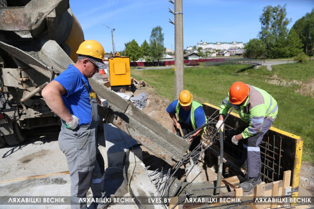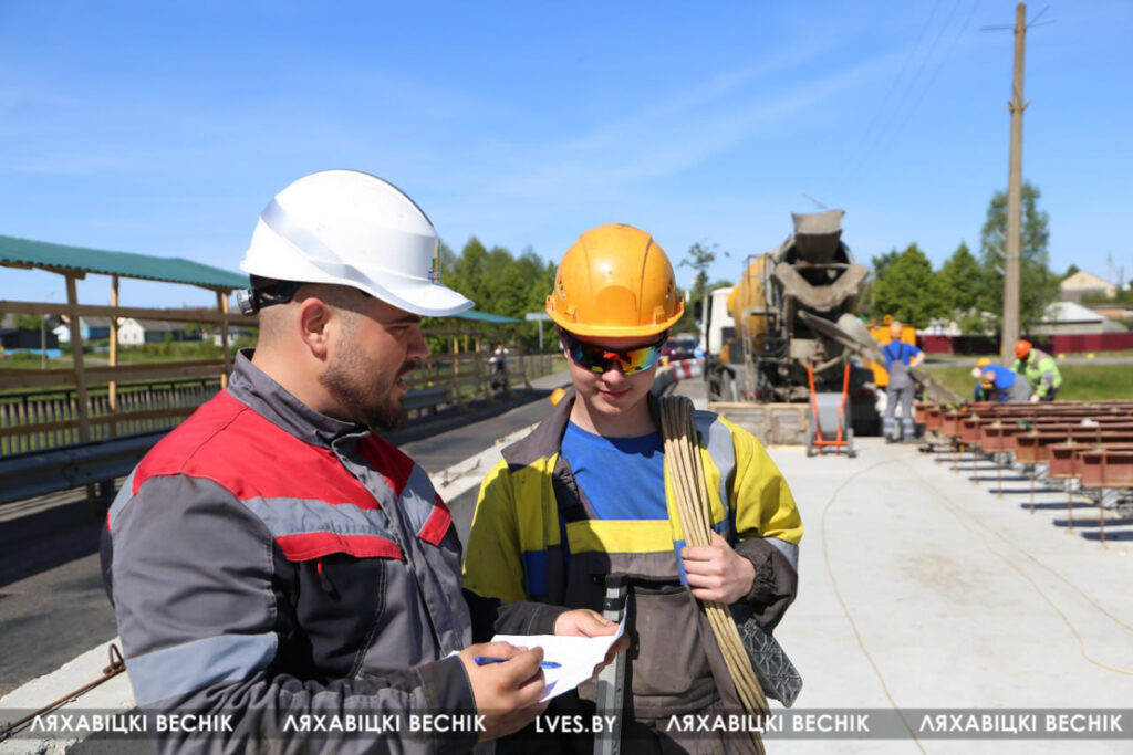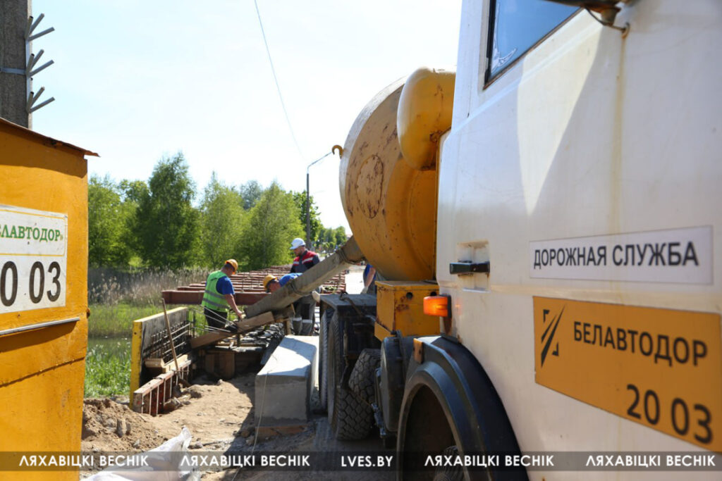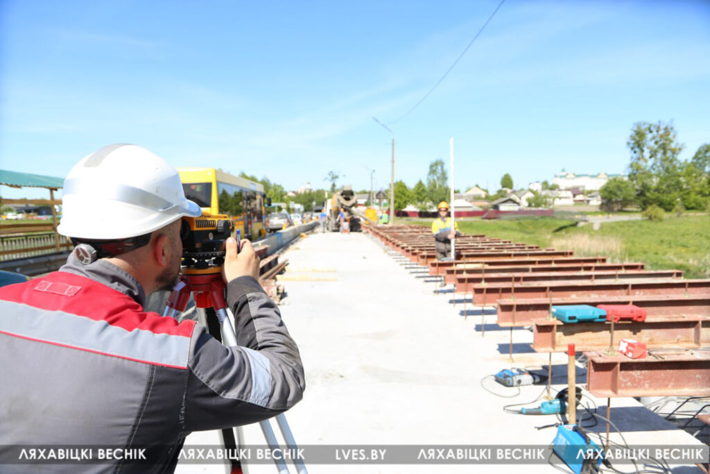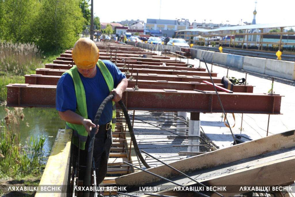 – Рамонт моста ідзе згодна графіка. На сённяшні дзень на адной з дарожных палос выкананы ўвесь комплекс дэмантажных работ. Пад асфальтабетоннае пакрыццё на паласе руху ўжо ўкладзена маналітная пліта. Зараз ідзе ўладкаванне пешаходнай дарожкі. Для гэтага вымашчана аснаванне для ўкладкі маналітнага жалезабетону. Да сярэдзіны чэрвеня будаўнікі плануюць выкласці дарожку пліткай і ўстанавіць металічную агароджу, таксама закатаюць праезную частку асфальтабетоннай сумессю. Далей пачнецца рамонт другой часткі моста. Плануецца, што да верасня аб’ект будзе здадзены, – расказаў намеснік дырэктара КУМВП ЖКГ “Ляхавіцкае ЖКГ” Віталій Калупановіч.