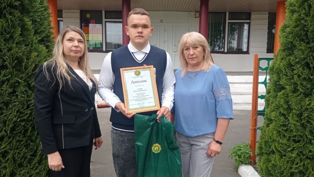 Учащемуся 11 класса ГУО «Туховичская средняя школа» Ляховичского района Денису Римша, занявшему 1 место в номинации «Устойчивое лесоуправление» за проект «Экологическое обоснование применения удобрения Гумат Рост для оптимизации условий роста и развития сеянцев дуба черешчатого» (руководитель проекта Петлицкая Е.М.);