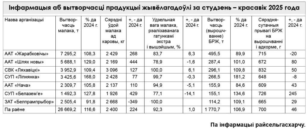 А лідарскую пазіцыю даўно, цвёрда і са значным адрывам ад іншых займае СВК «Ляхавіцкі». Прычым не стаіць на месцы, знаходзіць магчымасці з месяца ў месяц павышаць свой і без таго зусім не нізкі ўзровень сярэдніх прываг.