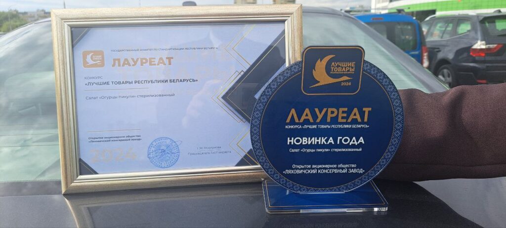 Дипломом лауреата отмечен салат «Огурцы пикули» Ляховичского консервного завода. Продукция получила специальный знак «Новинка года»