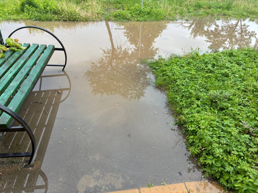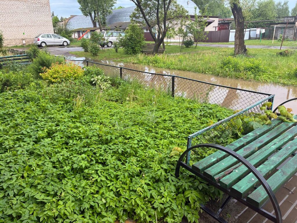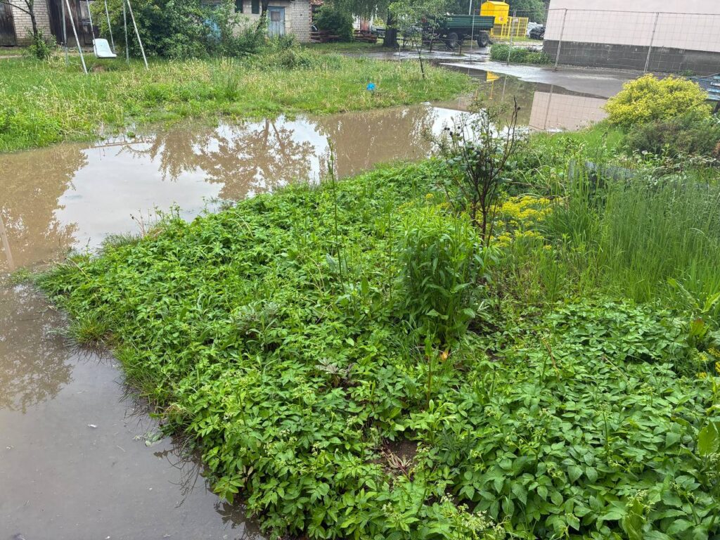 Как только проходят дожди, дворовая территория напоминает озеро, из подъезда не выйти. В подтверждение сказанного — вчерашние фото