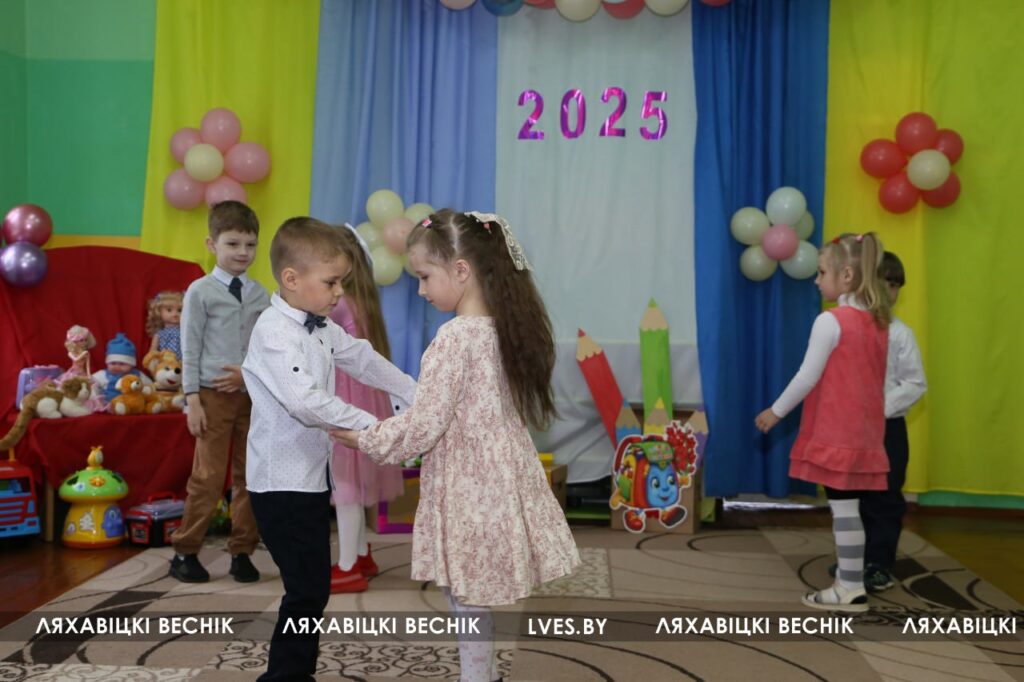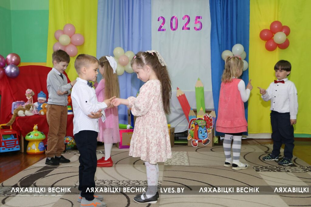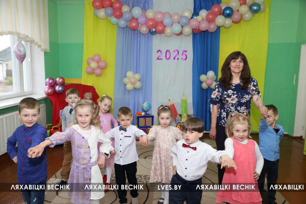 Аграгарадок Русінавічы, вуліца Цэнтральная, 15 – яшчэ адзін адрас шчаслівай краіны дзяцінства на Ляхавіччыне. Рознакаляровыя альтанкі і арэлі, лавачкі і столікі, казачныя персанажы і крытыя гульнявыя пляцоўкі, кветнікі і кветкавыя кампазіцыі – тэрыторыя уражвае яркасцю і каларытам. Адназначна, у такіх умовах хлопчыкам і дзяўчынкам падабаецца бавіць час на свежым паветры. Не менш вясёлкавая карціна і ўнутры садка, напоўненага звонкімі дзіцячымі галасамі. Дашкольная ўстанова рыхтуецца да свята – выпускнога балю для шасці выхаванцаў другой рознаўзроставай групы, якія з 1 верасня 2025 года набудуць новы статус – першакласнікі.