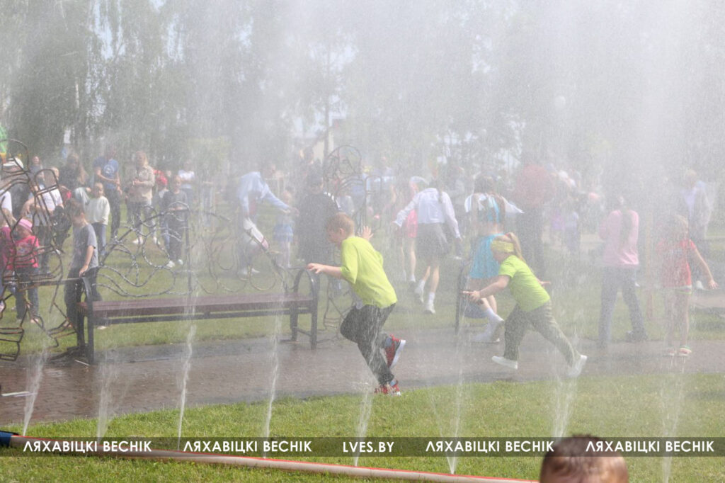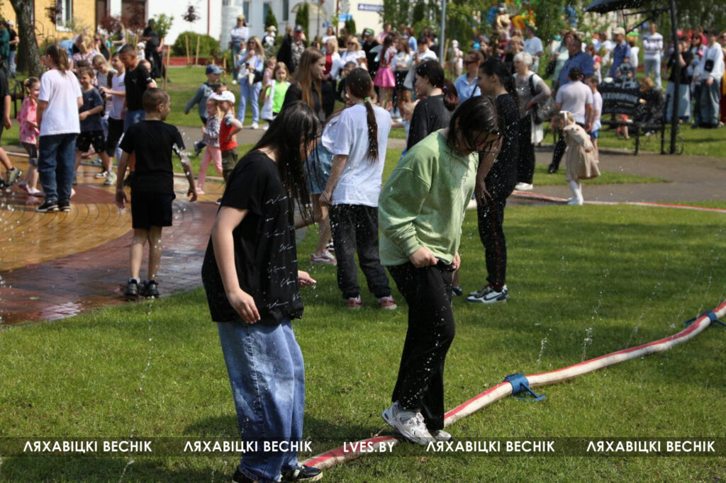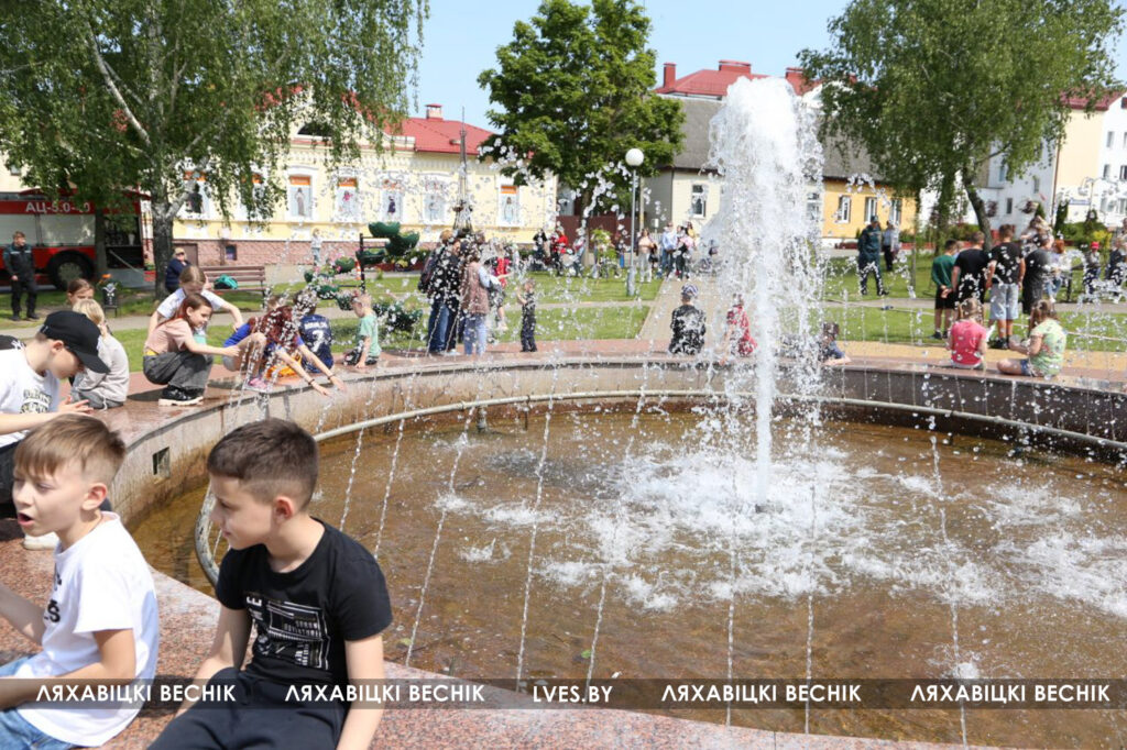 Акция «Безопасные каникулы» стартовала викторинами и конкурсами, демонстрацией аварийно-спасательной техники и оборудования, а также водным шоу Ляховичского РОЧС.