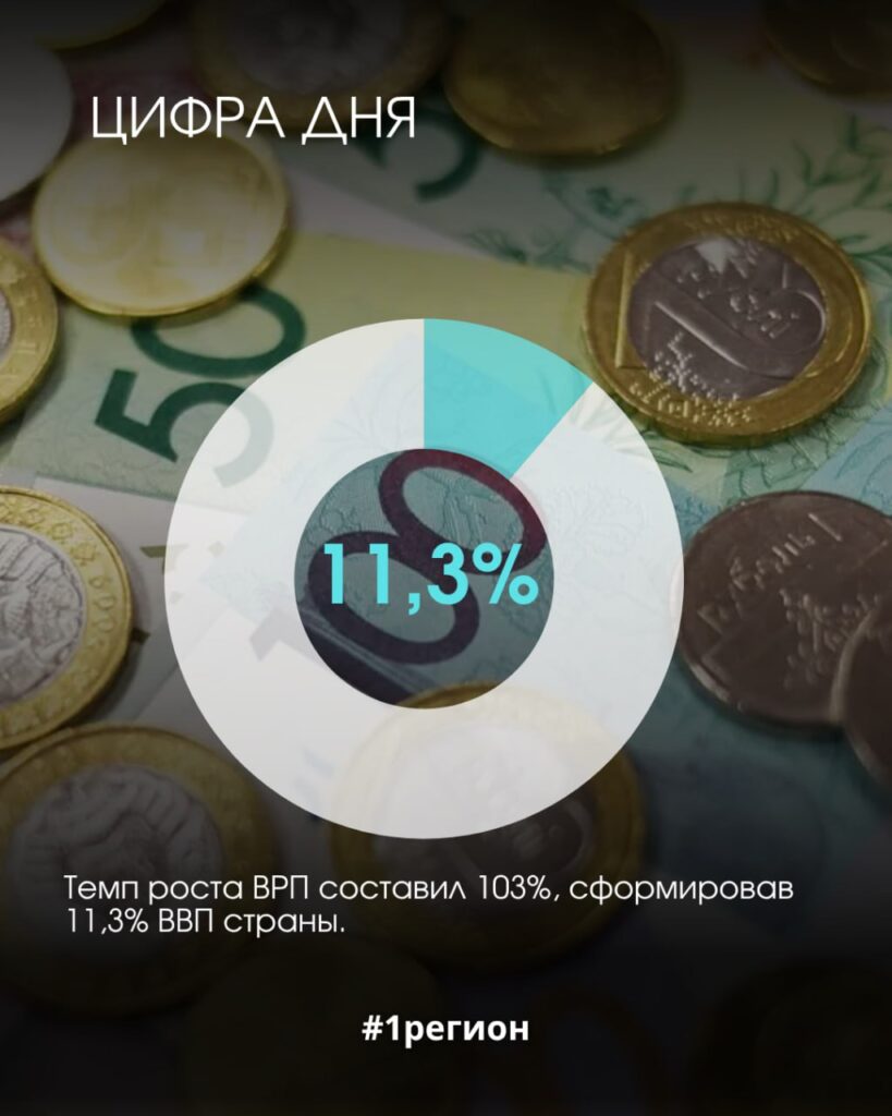 🔹Темп роста ВРП составил 103%, сформировав 11,3% ВВП страны.