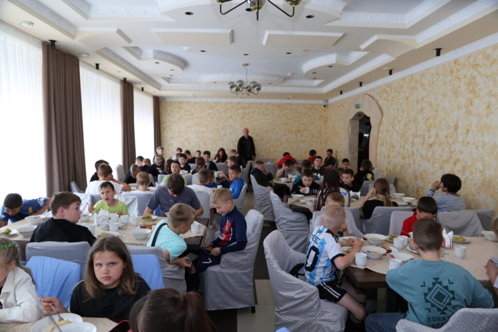 110 хлопчыкаў і дзяўчынак са спартыўна-аздараўленчага лагера «Каласок» пры Ляхавіцкай ДЮСШ на сняданак, абед і падвячорак спяшаюцца ў рэстаран “Ластаўка”.
