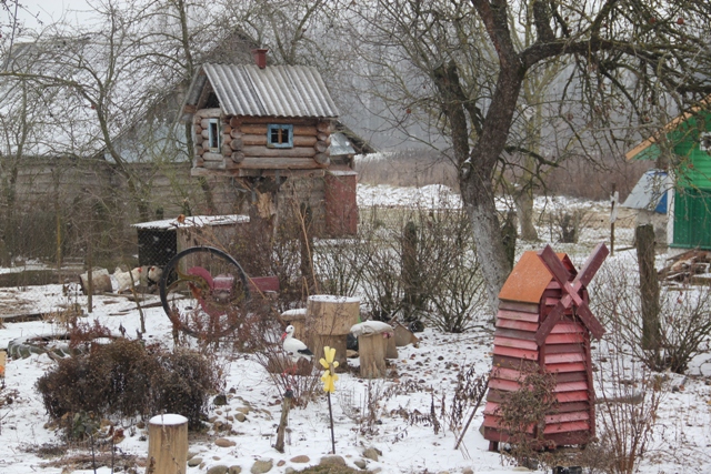 Па сцяжынцы, зацярушанай свежым сняжком, рушым уздоўж вялікага сада, упрыгожанага інеем. На акуратным цагляным доміку шыльда з надпісам “Дом узорнага санітарнага парадку”. На парозе ветліва сустракае гаспадыня.