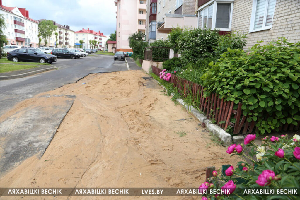 Яшчэ ў лютым гэтага года камунгас ухіляў аварыю на цеплатрасе, якая праходзіць праз двор па ўказаным адрасе. Яму засыпалі, а вось асфальтавае пакрыццё так і не аднавілі. Пасля дажджоў гэты ўчастак двара паміж пад’ездамі ператвараецца ў міні-возера, што не толькі непрыгожа, некамфортна, нязручна, але і небяспечна.