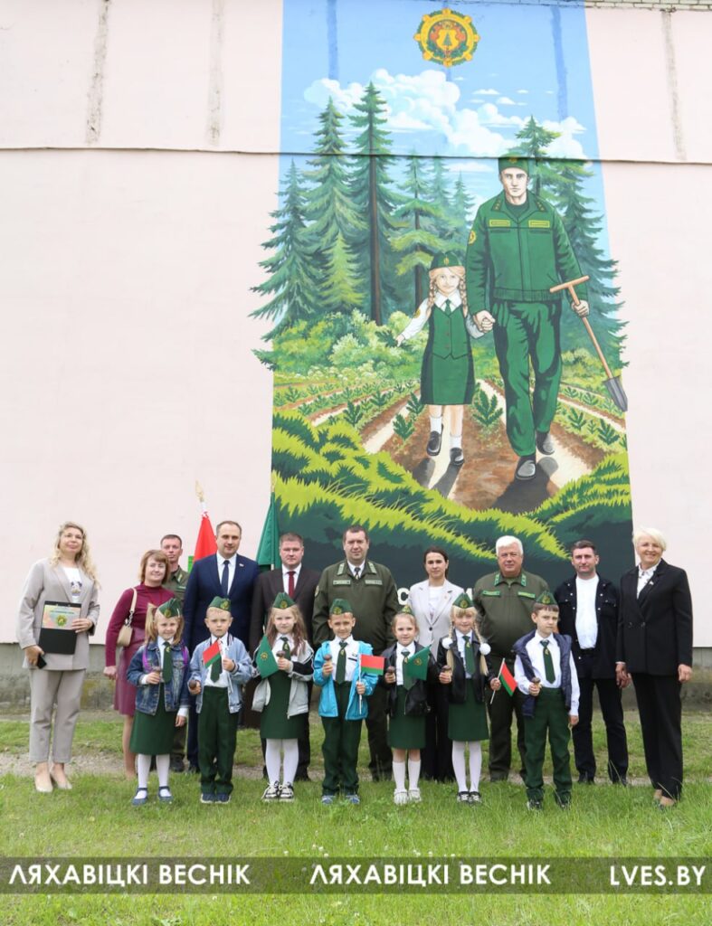 В торжественной обстановке в присутствии гостей — сотрудников министерства и Ляховичского лесхоза, воспитанников дошкольного лесничества «Лесовичок» детского сада № 2 г.Ляховичи открыт тематический мурал, который разместился на торцевой стороне дома №24 по улице Орловского в райцентре.