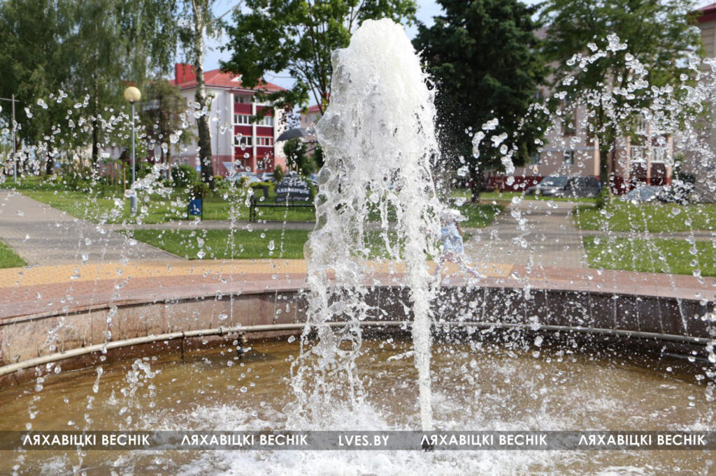 Фантан у скверы па вуліцы Леніна даўно стаў папулярным месцам адпачынку ў ляхавічан розных узростаў і гасцей горада.
