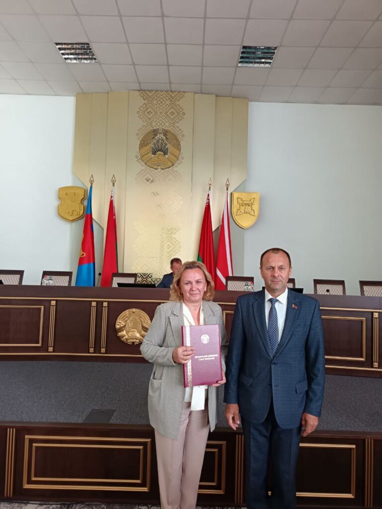 Председатель Ляховичского районного Совета депутатов Юрий Черенкевич и первый заместитель председателя Ляховичского райисполкома Василий Пыжик вручили награды за активное участие в организации и проведении районных общественно значимых мероприятий, за активную работу по благоустройству, а также за высокий уровень оформления и представления экспозиций во время празднования Дня Победы.