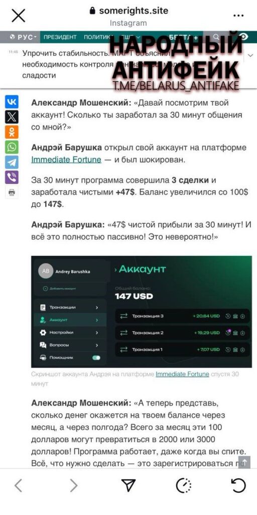 ❗️На самом деле — это обыкновенная наживка. Мошенники продвигают фейковую «инвестиционную платформу» под названием Immediate Fortune и просят «зарегистрироваться» на ней. Проще говоря — передать им свои личные, а точнее — номер паспорта, телефон и цифры с банковской карты.