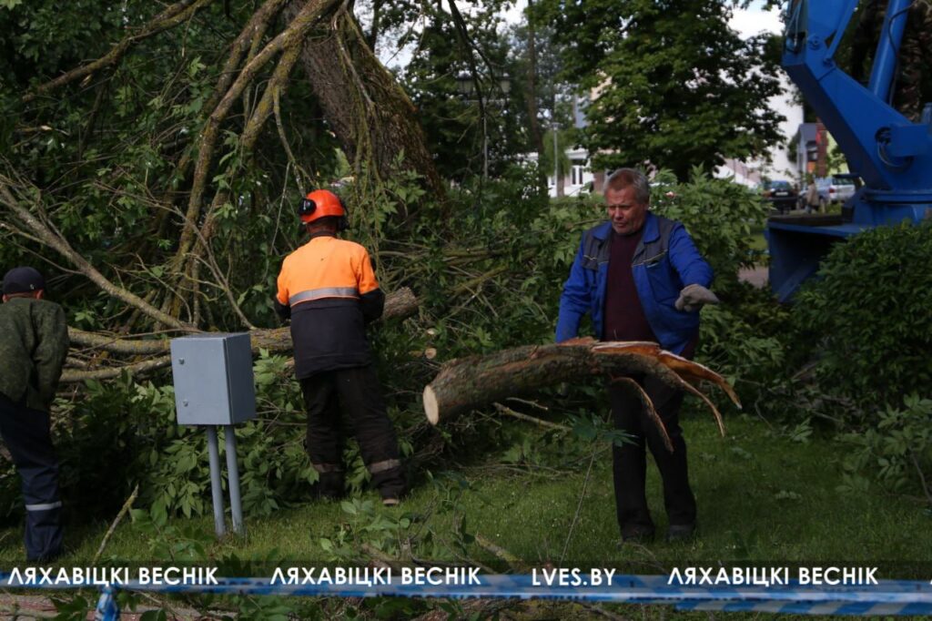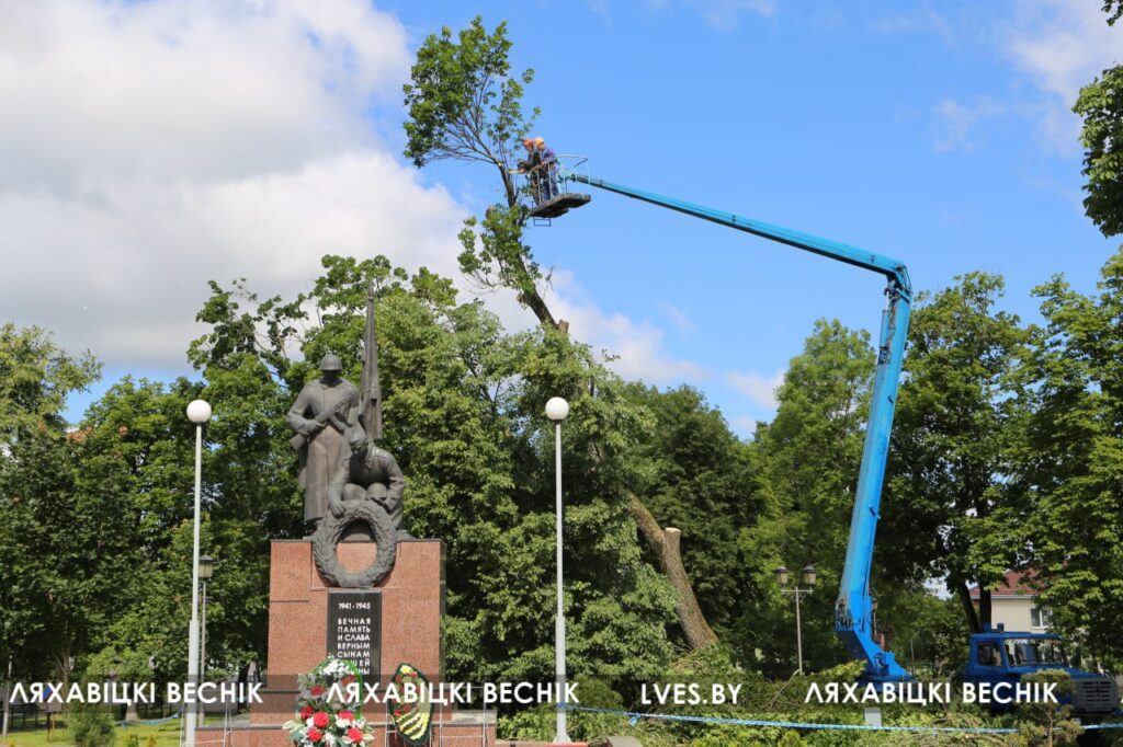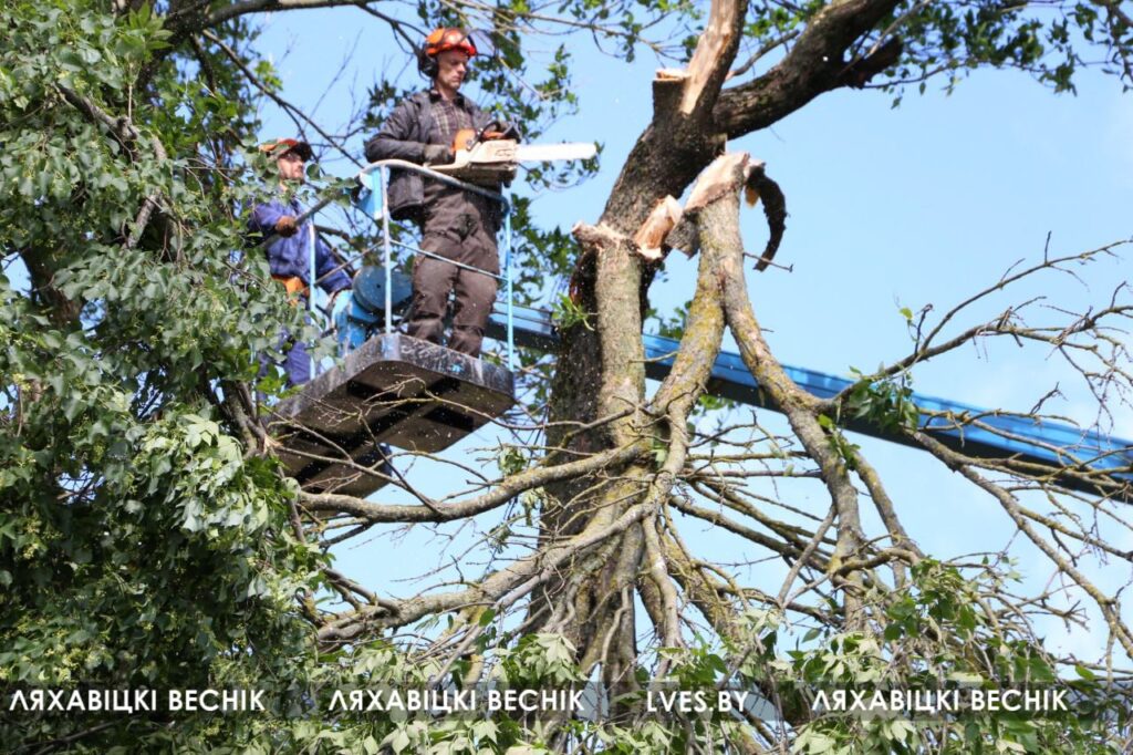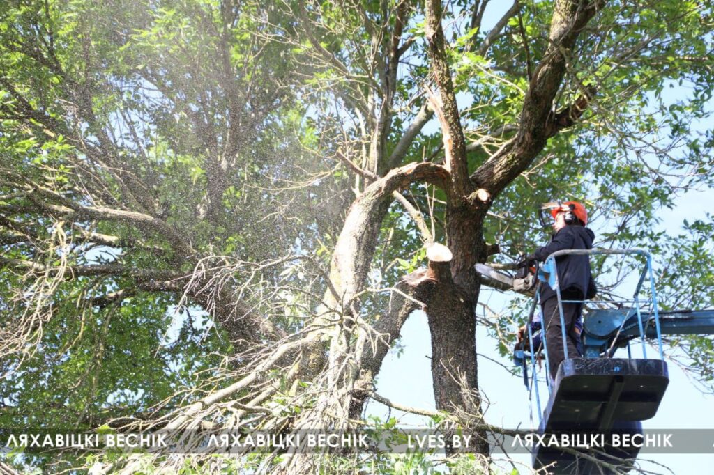После проведённого обследования установили, что данное дерево является трухлявым. Поэтому принято решение спилить дерево, в том числе и для того, чтобы избежать чрезвычайной ситуации. При сильных порывах ветра возможно падение дерева или его частей, что может привести к травмированию людей. Силами работников лесозаготовительного участка работы были выполнены в первой половине дня 26 июня, — рассказал директор КУМПП ЖКХ «Ляховичское ЖКХ» Андрей Чайковский.