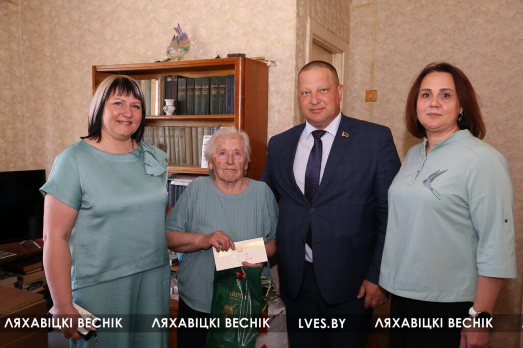 Сегодня председатель Ляховичского районного исполнительного комитета Николай Мороз побывал с поздравлениями и подарками у ляховичанки Зои Осиповой.