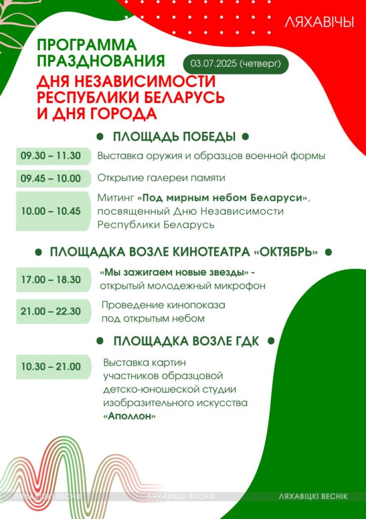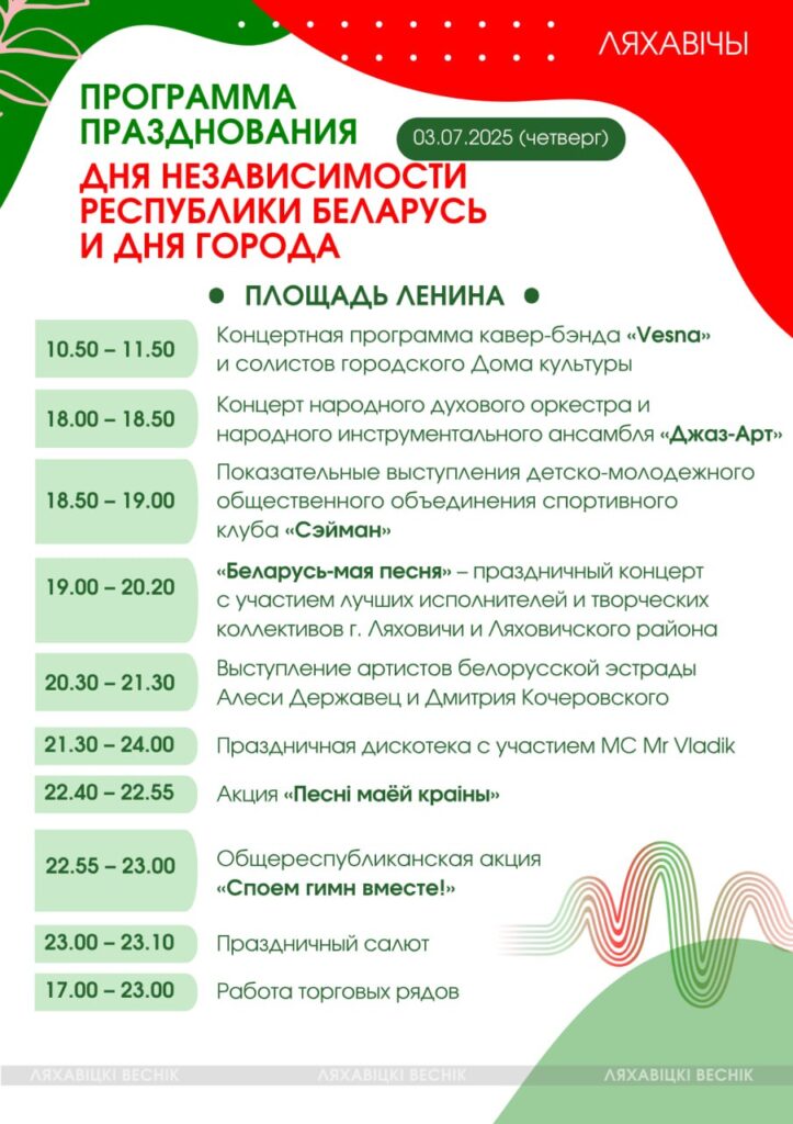 Программа Дня Независимости в Ляховичах