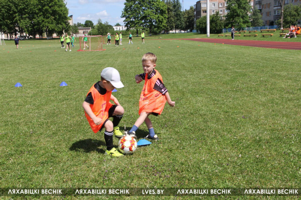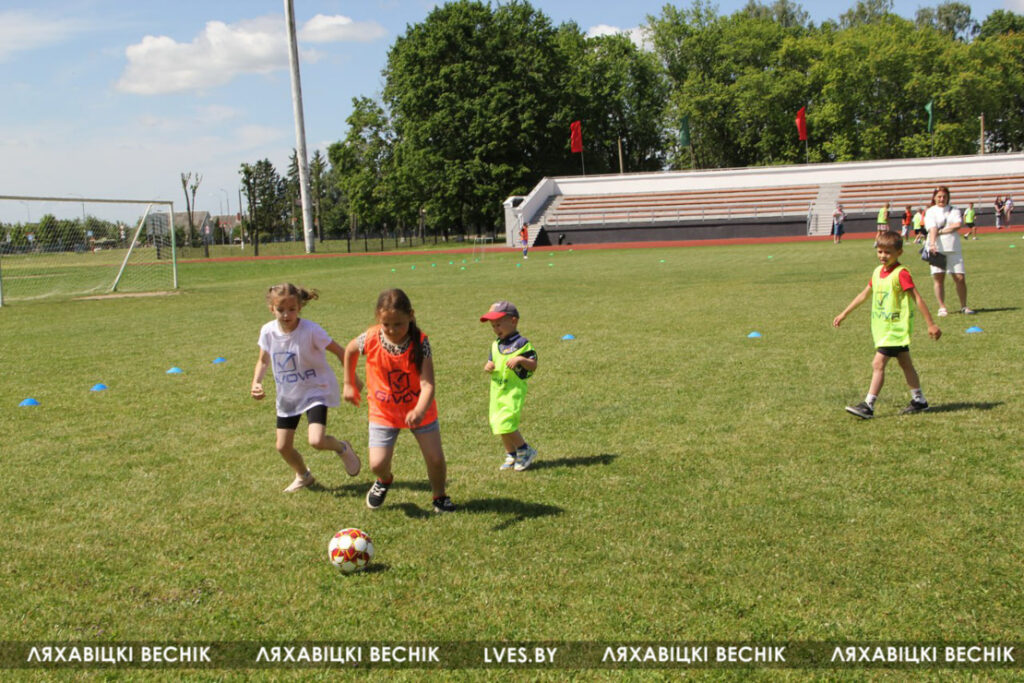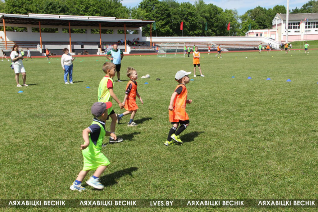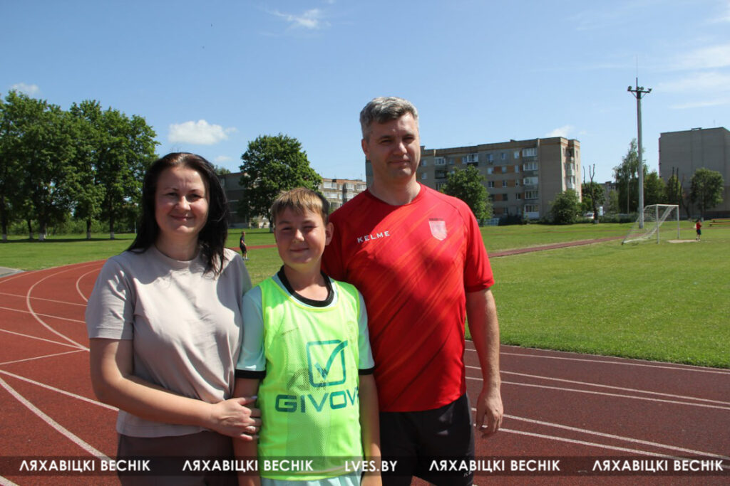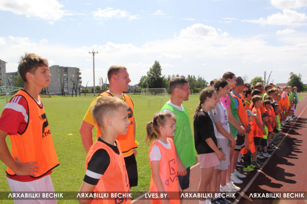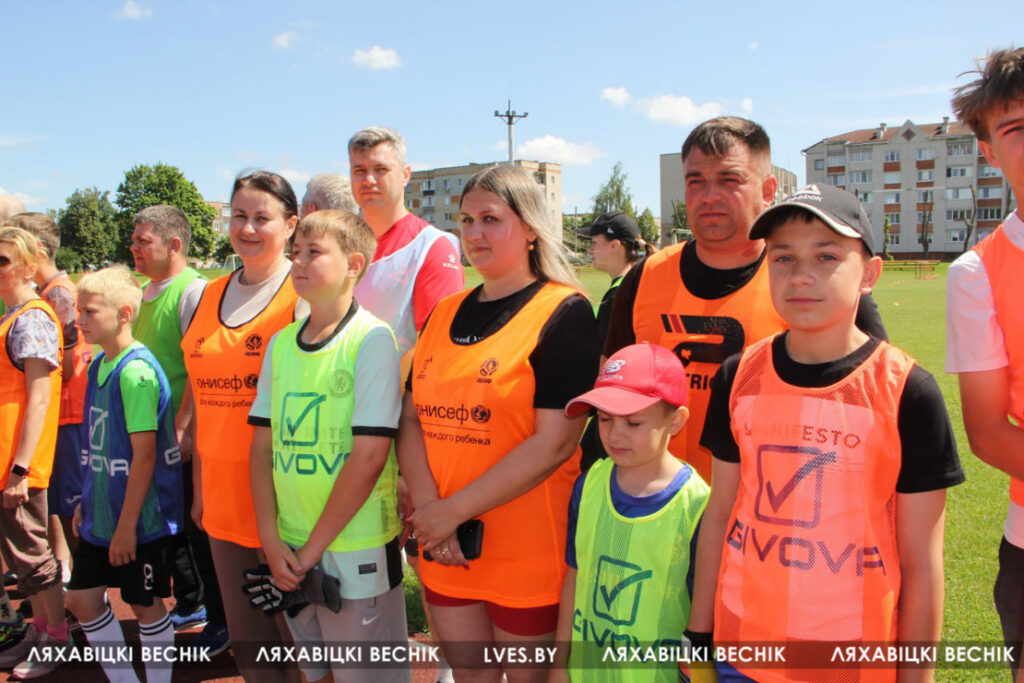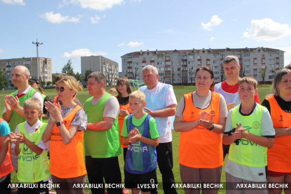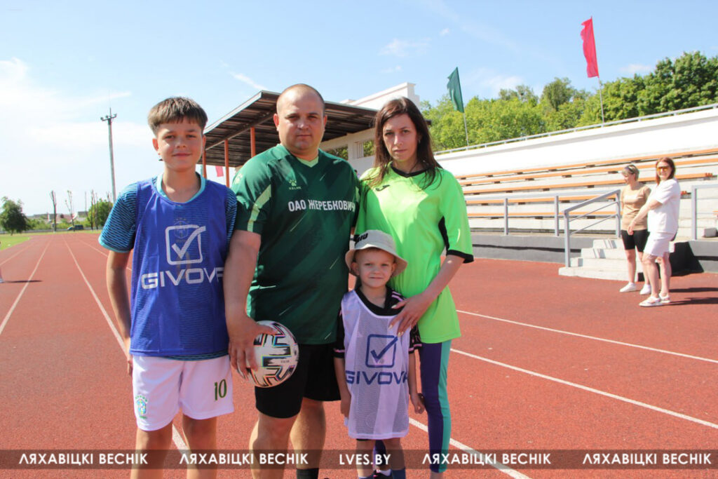 В районном семейном фестивале «Папа, мама я – футбольная семья», который проходит на стадионе «Колос», принимают участие 17 семей со всей Ляховиччины. Организатор спортивного состязания – ДЮСШ – посвятил его Дню города. На поле вышли не только взрослые, но и юные футболисты, среди которых и годовалый Матвей Негорожин. А шестилетний Максим Сокол сегодня принимает поздравления с днём рождения. ДЮСШ для именинника подготовила приятный сюрприз.