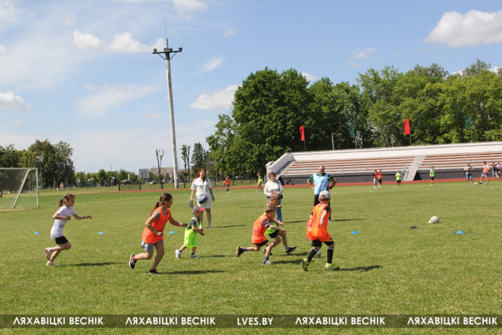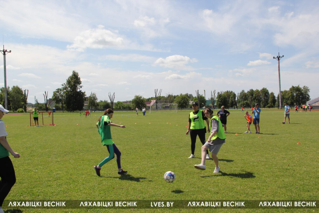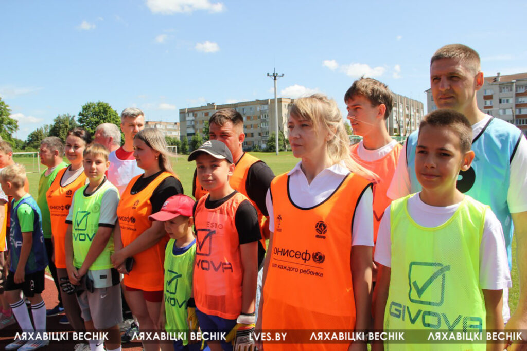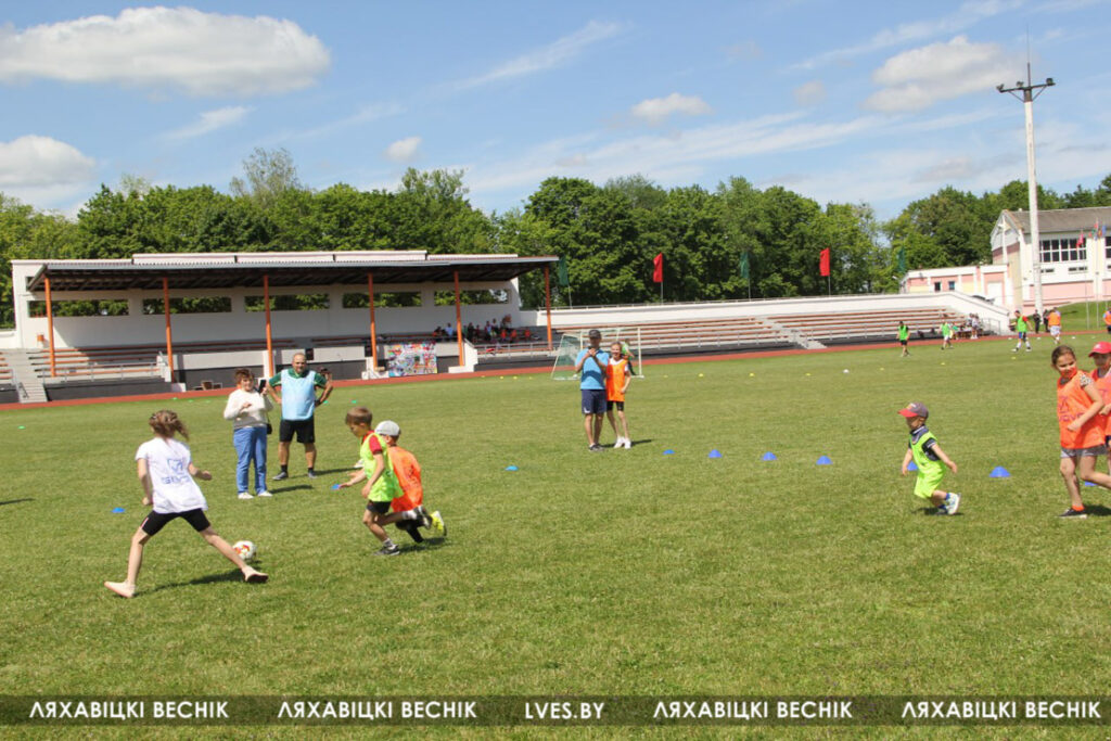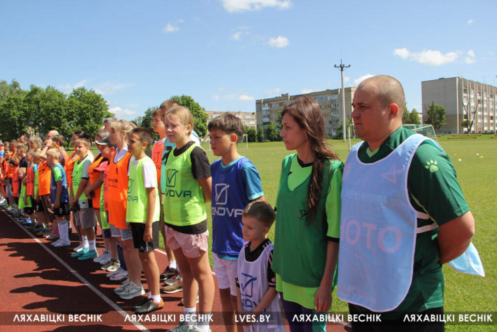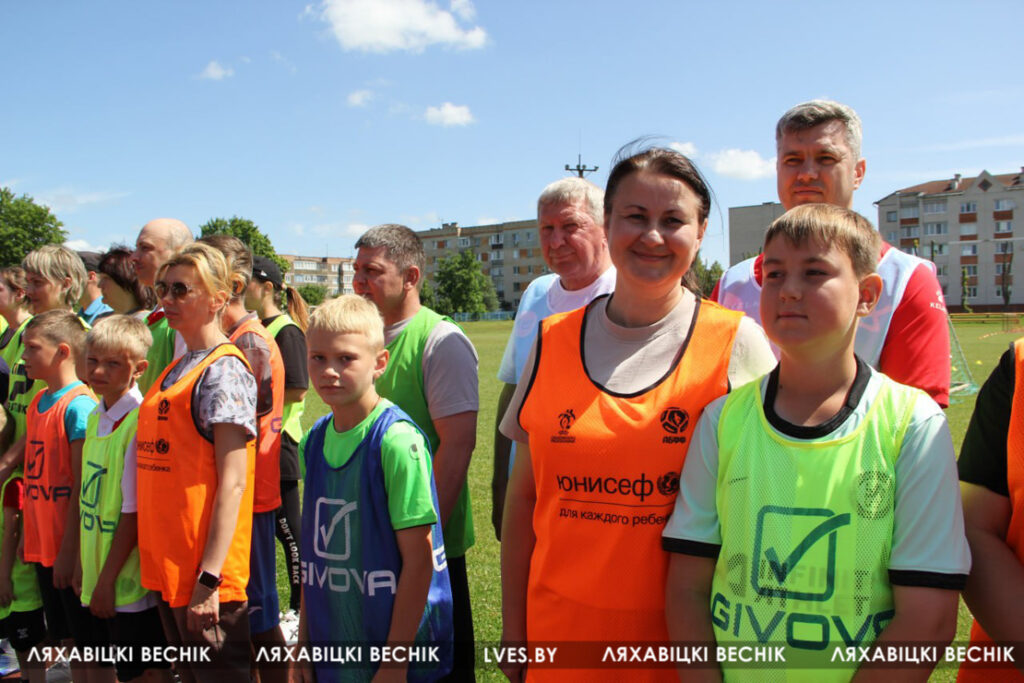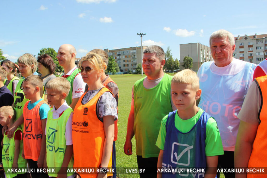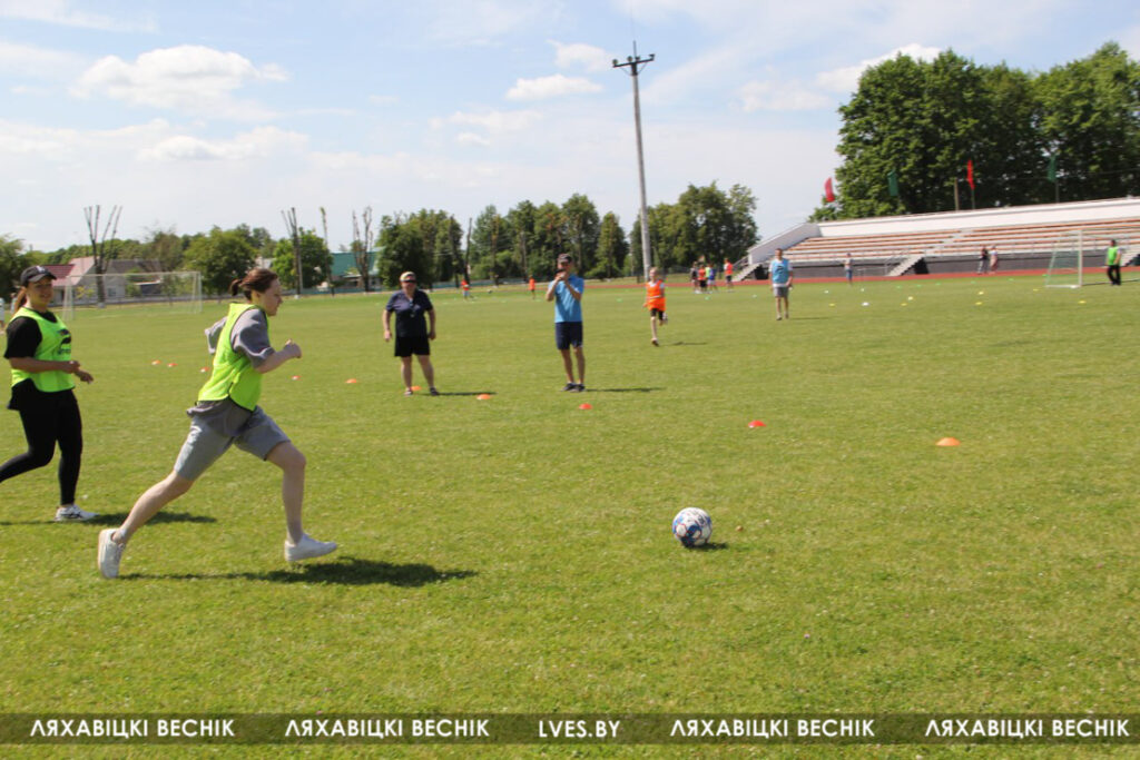 В районном семейном фестивале «Папа, мама я – футбольная семья», который проходит на стадионе «Колос», принимают участие 17 семей со всей Ляховиччины. Организатор спортивного состязания – ДЮСШ – посвятил его Дню города. На поле вышли не только взрослые, но и юные футболисты, среди которых и годовалый Матвей Негорожин. А шестилетний Максим Сокол сегодня принимает поздравления с днём рождения. ДЮСШ для именинника подготовила приятный сюрприз.