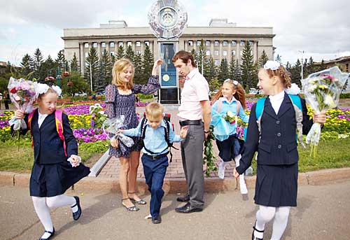У апошнія дні народу асабліва шмат: многія імкнуцца загадзя сабраць партфель і павесіць на плечыкі новае школьнае адзенне. Давялося назіраць, як экіпіруецца ў школу дзяўчынка-другакласніца пад кіраўніцтвам мамы і малодшай сястрычкі. Яны выбіралі абнову ў школу. Прымералі некалькі касцюмаў. Спыніліся на цёмна-сіняй “двойцы” за 89000 рублёў, да яе падабралі белую з карункамі кашулю (36000 рублёў), потым яшчэ спартыўны касцюм (56000 рублёў), лакавыя туфлі (89000 рублёў), яркі партфель (54000 рублёў). А калі да гэтых неабходных рэчаў дадаць яшчэ пісьмовыя прыналежнасці і ўсе астатнія “дробязі”, атрымаецца больш за 500000 рублёў. Вось такая арыфметыка збору дзіцяці ў школу.