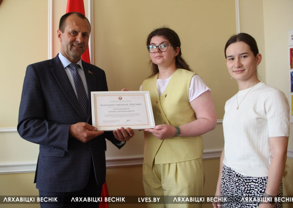 Высокой оценкой отмечено плодотворное сотрудничество и оказание содействия в проведении тематических мероприятий молодёжного Совета при Совете Республики Национального собрания и поддержку молодёжного парламентского движения Республики Беларусь. Награду руководителю депутатского корпуса района передала член Молодежного совета при Совете Республики Национального собрания Республики Беларусь, председатель Молодежного совета при Ляховичском районном Совете депутатов Яна Дедуль.