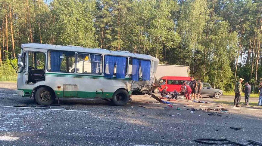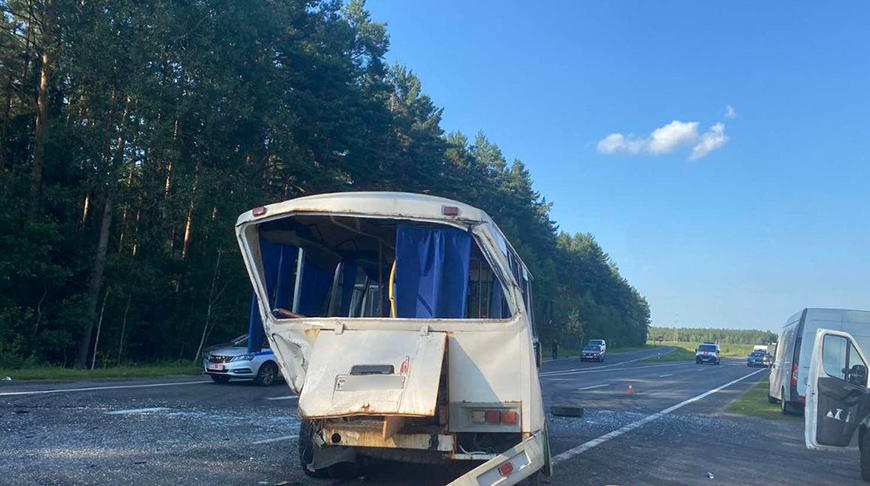 «Сегодня около 18.30 в Березовском районе на 124-м км автодороги М1/Е30 Брест — Минск — граница РФ, по предварительной информации, 56-летний водитель автобуса ПАЗ при развороте с полосы разгона не убедился в безопасности и совершил столкновение с попутным микроавтобусом Ford под управлением 40-летнего водителя. Три человека госпитализированы. Также в учреждение здравоохранения для оценки состояния здоровья доставлены пассажиры автобуса», — сообщили в пресс-службе.