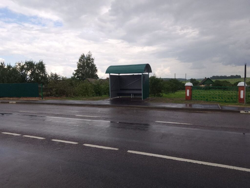 Заасфальтирована часть улицы Железнодорожной в агрогородке Русиновичи и установлен новый павильон на остановке общественного транспорта